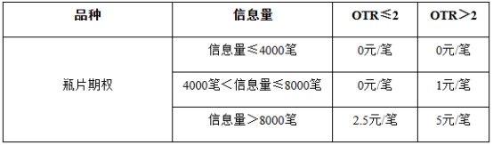 其中,期货品种申报费根据客户在期货合约上的报单成交比(Order to Trade Ratio,OTR)所在区间以及信息量分梯度计算;期权品种申报费根据客户或非期货公司会员在期权合约月份上的报单成交比所在区间以及信息量分梯度计算。
