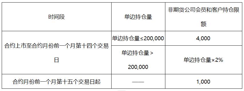 非期货公司会员或者客户在上述期货品种各合约上单日开仓量不得超过其交易限额。该单日开仓量是指非期货公司会员或者客户当日在单个合约上的买开仓数量与卖开仓数量之和。