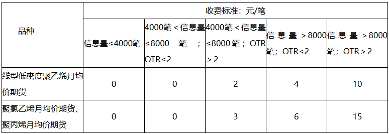 2.合约申报费=∑(客户或者非期货公司会员当日在合约上各档位信息量×该档位收费标准)。