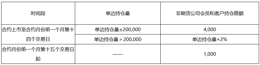 非期货公司会员或者客户在上述期货品种各合约上单日开仓量不得超过其交易限额。该单日开仓量是指非期货公司会员或者客户当日在单个合约上的买开仓数量与卖开仓数量之和。