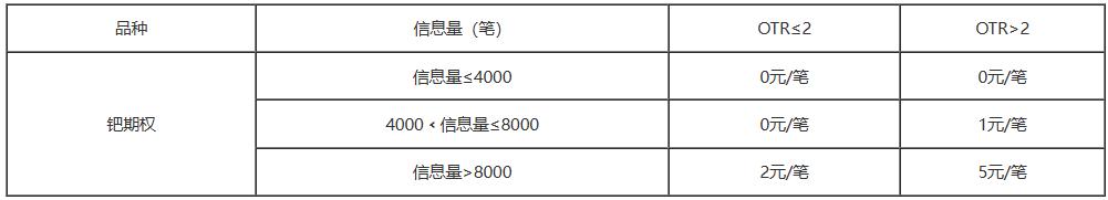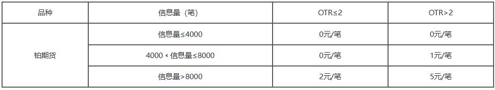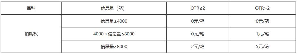 铂期权按日、按合约月份收取申报费,收费标准如下: