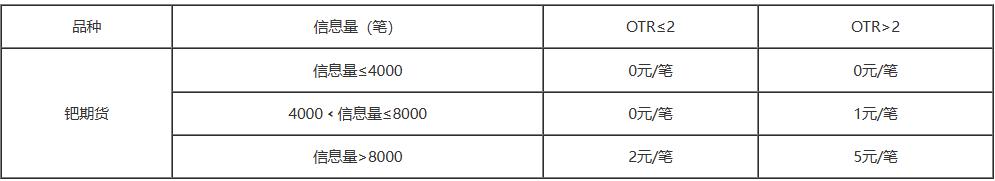 钯期权按日、按合约月份收取申报费,收费标准如下: