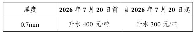 根据《上海期货交易所不锈钢期货合约》《上海期货交易所不锈钢期货业务细则》等有关规定,经研究决定,对不锈钢期货部分厚度升贴水进行调整,自2026年7月20日起执行,具体情况如下: